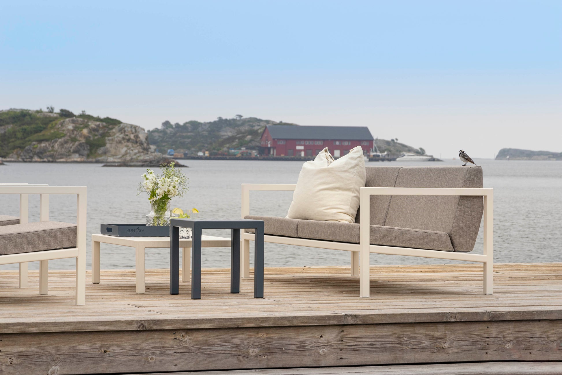 Alle våre puter kan stå ute igjennom hele sesongen i typisk norsk sommervær! Vi bruker vann drenerende skum og vannavstøtende tekstiler for at putene skal tørke raskt etter regnskyll. Etter regn kommer sol!